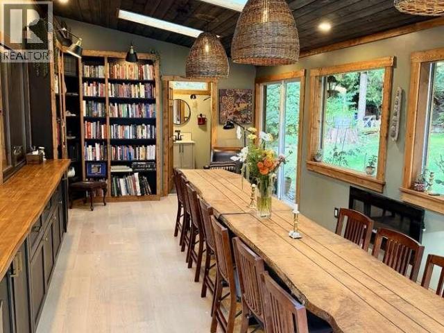 For more information, please click Brochure button. Set on private 4.3 acres just minutes to the ocean, Lund, and 25 minutes to Powell River, this exceptional forested property features a beautiful 4,000+ sq ft 4-bedroom home plus a self-contained suite. Also included are a stunning 1,250 sq ft studio/workshop, four guest cabins, and a separate entrance office. The main home offers a warm layout with a spacious kitchen, granite countertops, skylights, wood beams, and bright living areas that open to outdoor decks. Expanded dining with skylights, a built-in library, heated floors and floor-to-ceiling glass connects to the landscape. The lower level includes a pantry, fourth bedroom, and billiard lounge. Landscaped grounds feature fruit trees, gardens, a seasonal stream and waterfall, plus a wood-fired hot tub, pool, and forest guest kitchen. A truly special coastal forest setting offering privacy, flexibility, income potential, and a rare lifestyle opportunity. (id:25560)